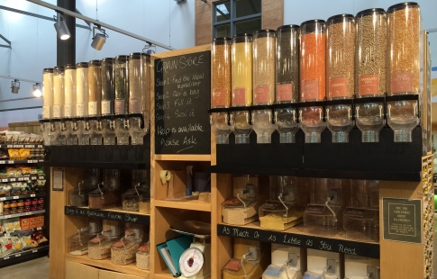 - Cross merchandising of reusable bags and boxes alongside the bag-your-own produce.