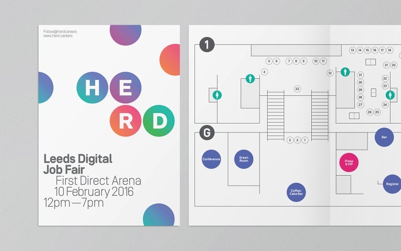 The main culmination of our work so far has been Herd’s event at Leeds Arena. Diverse media and collateral was created including programmes, t-shirts, animations, signage and lots more.
